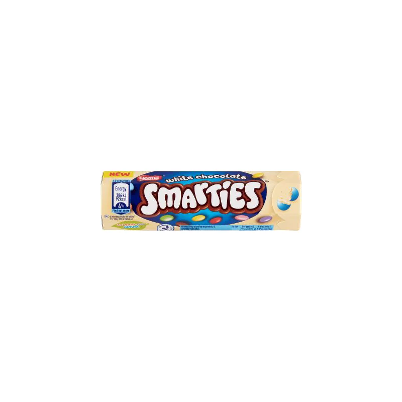 Smarties White er en variant af den klassiske Smarties, hvor chokoladekernen består af hvid chokolade i stedet for mælkechokolade. Disse små, farverige chokoladestykker har en sprød sukkerskal lavet med naturlige farver fra planteekstrakter som spirulina og gulerod. Denne version af Smarties er kendt for sin søde, cremede smag og er populær blandt både børn og voksne.